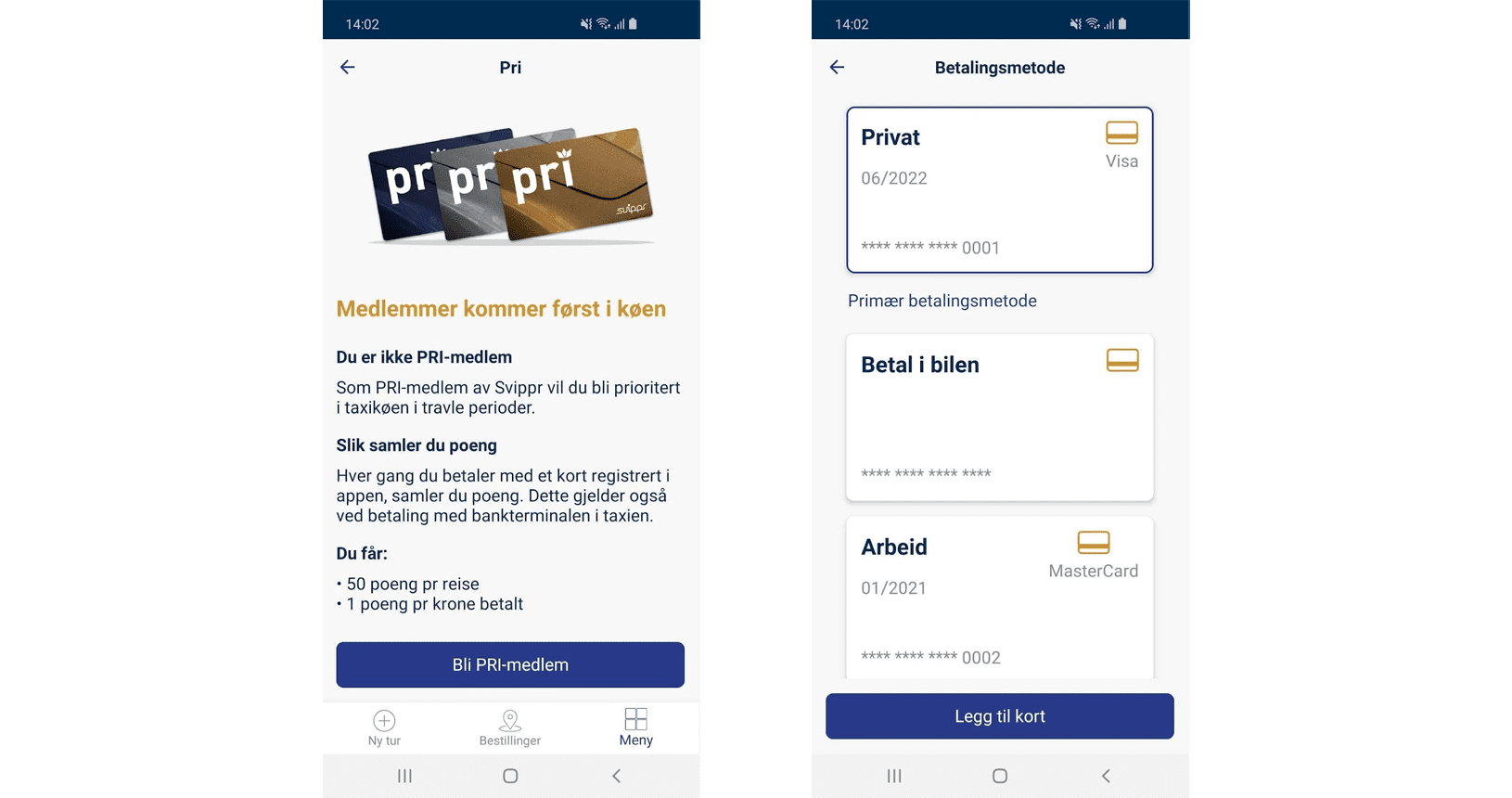 kredittkort og betal reisen med appen. Enkelt og kjapt! Kvittering